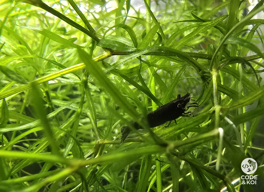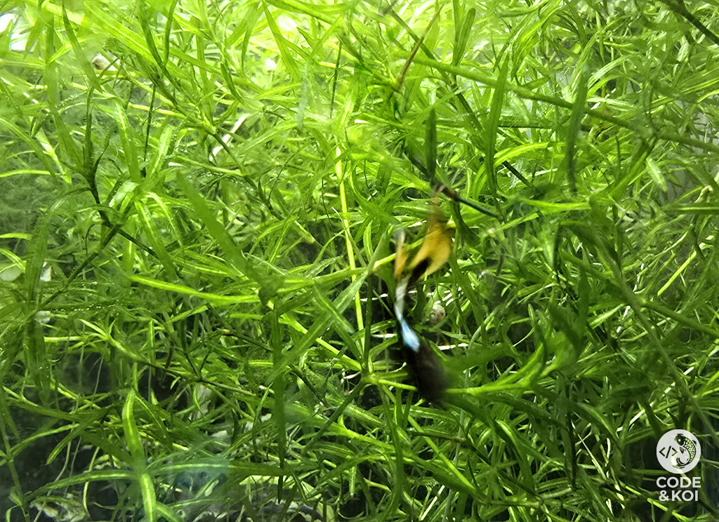 Its dense, trailing growth creates valuable cover for baby fish and shy species, while also helping to absorb excess nutrients from the water. The fine foliage supports the growth of natural biofilm, providing an additional grazing surface for shrimp. For best results, keep under moderate to bright light with water temperatures of 20–30°C and a pH of 6.0–8.0. Occasional fertiliser can be used to boost growth, though it is not essential.